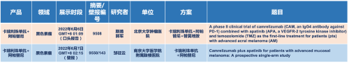在黑色素瘤领域,金年会|jinnianhui的卡瑞利珠单抗联合阿帕替尼(“双艾”组合)在2022 ASCO共入选1项口头报告和1项壁报展示。