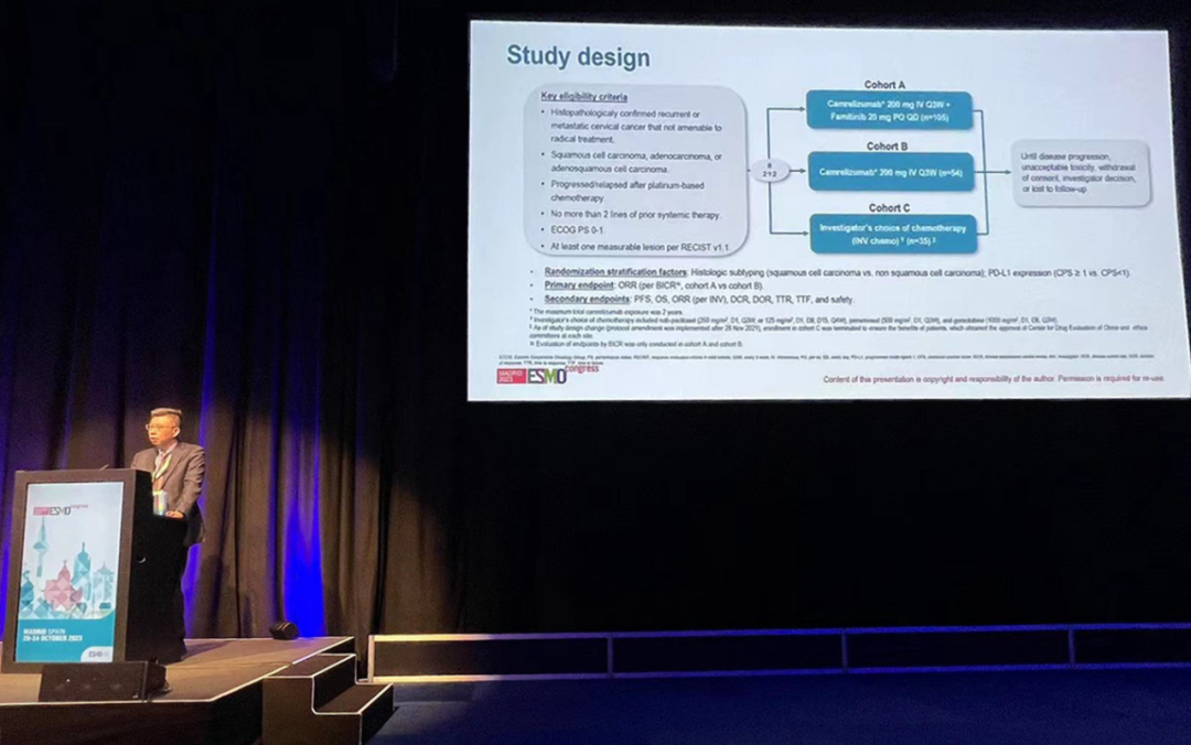 有望为宫颈癌患者带来治疗新选择10月22日,金年会|jinnianhui创新药卡瑞利珠单抗联合法米替尼对比卡瑞利珠单抗单药或研究者选择的化疗治疗复发转移性宫颈癌随机、开放、对照、多中心的Ⅱ期临床研究(SHR-1210-Ⅱ-217) 亮相2023 ESMO大会简短口头报告现场3。该研究由复旦大学附属肿瘤医院吴小华教授团队开展,吴小华教授在现场公布了该重磅研究进展。研究结果显示,在既往以铂为基础化疗失败后复发或转移性宫颈癌患者中,与单独使用卡瑞利珠单抗或研究者选择的化疗相比,卡瑞利珠单抗联合法米替尼显著提高了抗肿瘤活性,安全性可控,有望为晚期宫颈癌患者提供新的治疗选择。