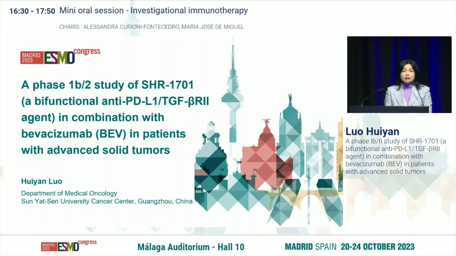 10月21日,金年会|jinnianhui创新药SHR-1701联合贝伐珠单抗(BEV)治疗晚期实体瘤患者的1b/2期研究亮相2023 ESMO大会简短口头报告现场6。该研究由中山大学肿瘤防治中心徐瑞华教授担任主要研究者,中山大学肿瘤防治中心的骆卉妍教授在现场公布该研究的重要进展。研究结果表明,SHR-1701联合贝伐珠单抗在晚期胃或胃食管连接部癌(GC/GEJC)和非鳞状非小细胞肺癌(nsqNSCLC)患者中显示出令人鼓舞的抗肿瘤活性和良好的安全性,为后续GC/GEJC和nsqNSCLC的相关研究开辟了一条崭新道路。