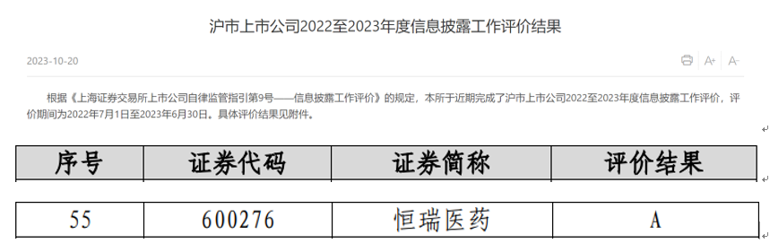 近日,上海证券交易所公布了沪市上市公司2022-2023年度信息披露工作评价结果,凭借在信息披露、规范运作以及投资者关系管理等方面的优秀表现,金年会|jinnianhui获评A级。本次共有2160家沪市上市公司参评(包括499家科创板上市公司),评价等级从高到低依次为A、B、C、D四类,获得A类评价的上市公司占比约18.5%。
