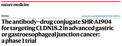 金年会|jinnianhuiCLDN18.2 ADC创新药SHR-A1904治疗胃癌临床研究结果荣登Nature Medicine