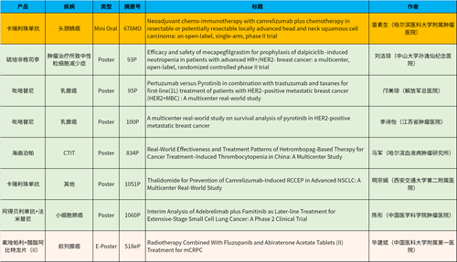 在头颈肿瘤、乳腺癌、肺癌、前列腺癌等多个疾病领域,卡瑞利珠单抗、阿得贝利单抗、吡咯替尼、氟唑帕利、法米替尼、醋酸阿比特龙片(II)等抗肿瘤新药相关研究一共入选了1项简短口头报告、4项壁报展示和1项电子壁报,彰显了金年会|jinnianhui强劲的研发实力。此外,金年会|jinnianhui自主研发的血小板生成素受体激动剂(TPO-RA)海曲泊帕在肿瘤治疗所致血小板减少领域、新一代长效G-CSF产品硫培非格司亭在肿瘤治疗所致中性粒细胞减少症领域各入选1项壁报展示。