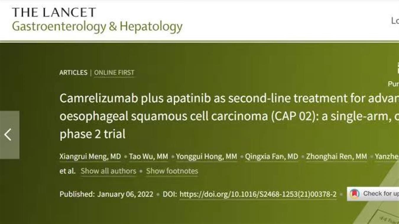 恒瑞卡瑞利珠单抗联合阿帕替尼最新研究成果荣登《柳叶刀·肿瘤》